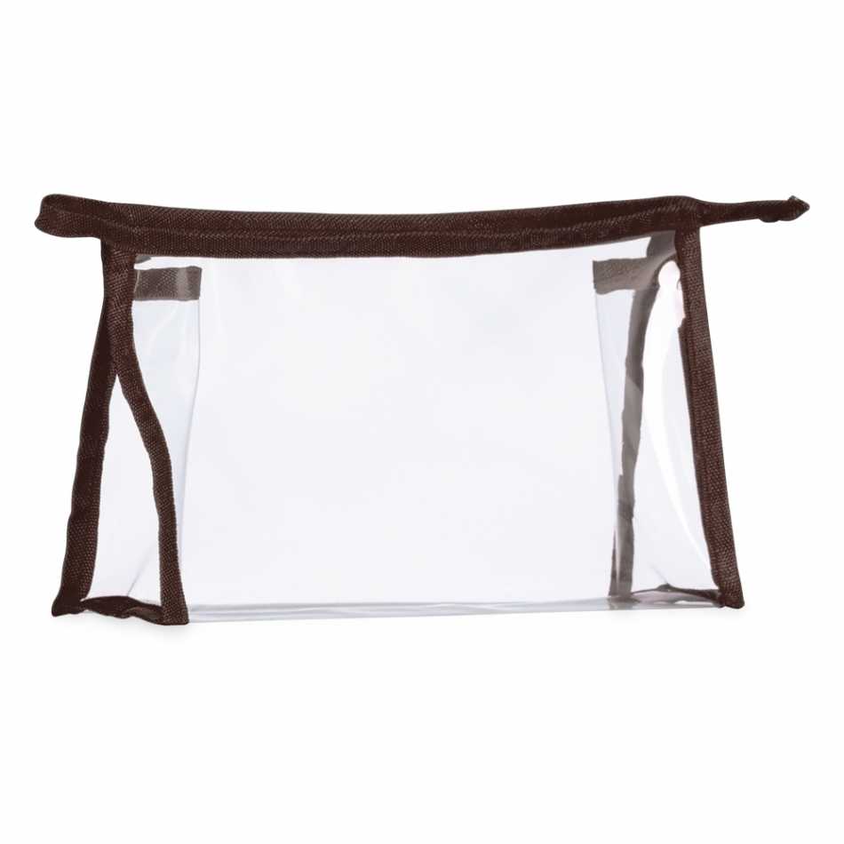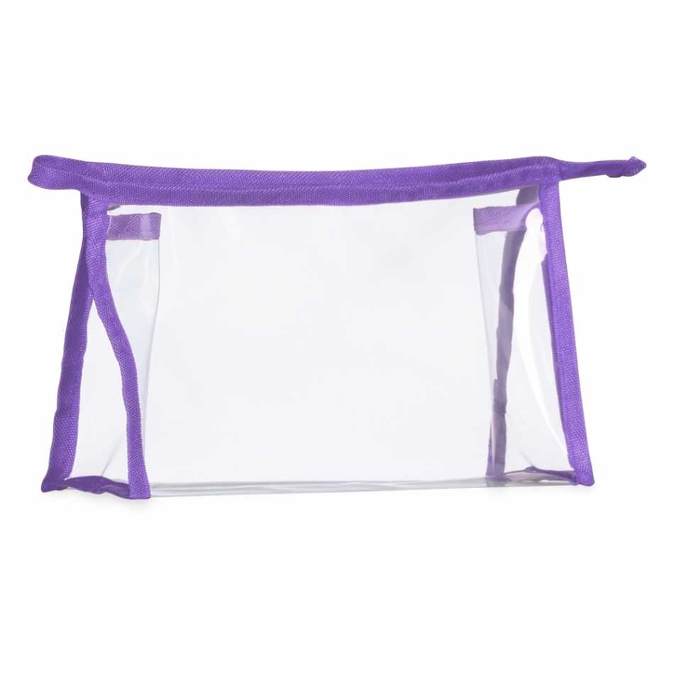 Necessaire plástica transparente com detalhe colorido em nylon.